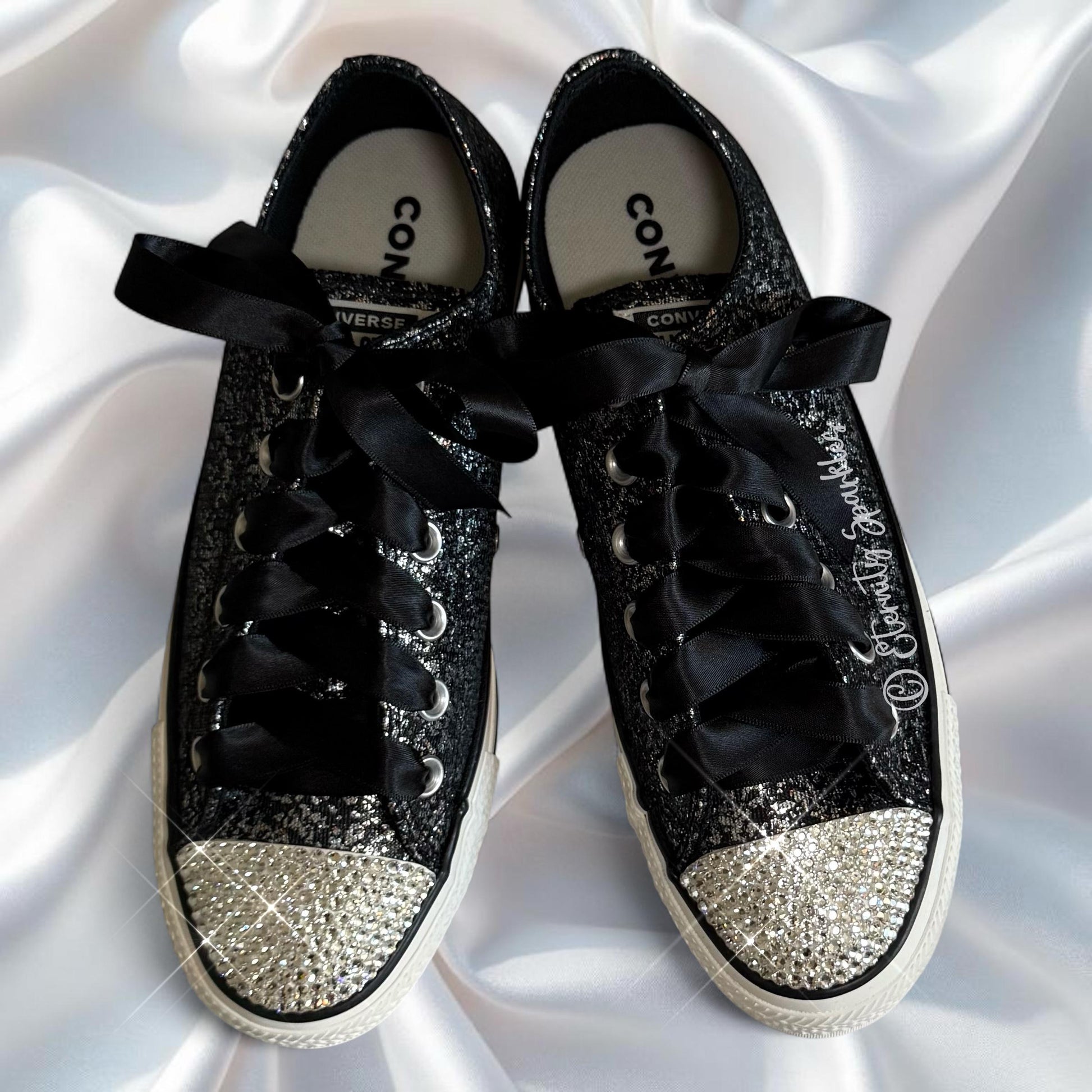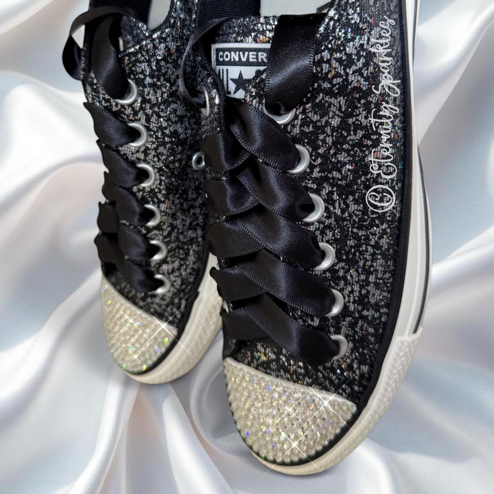 Custom Converse Black Glitter Luxury Crystal Sparkle Trainers