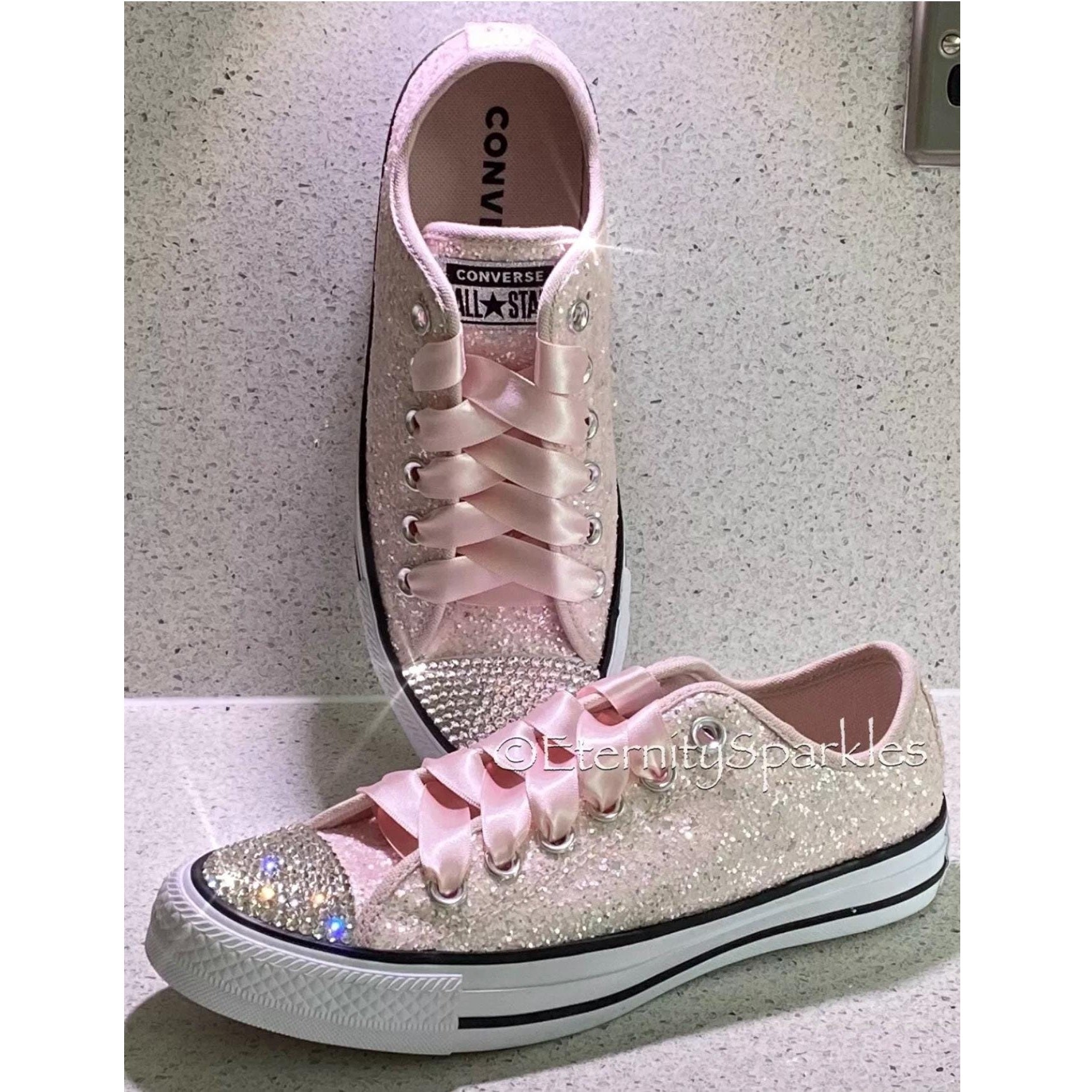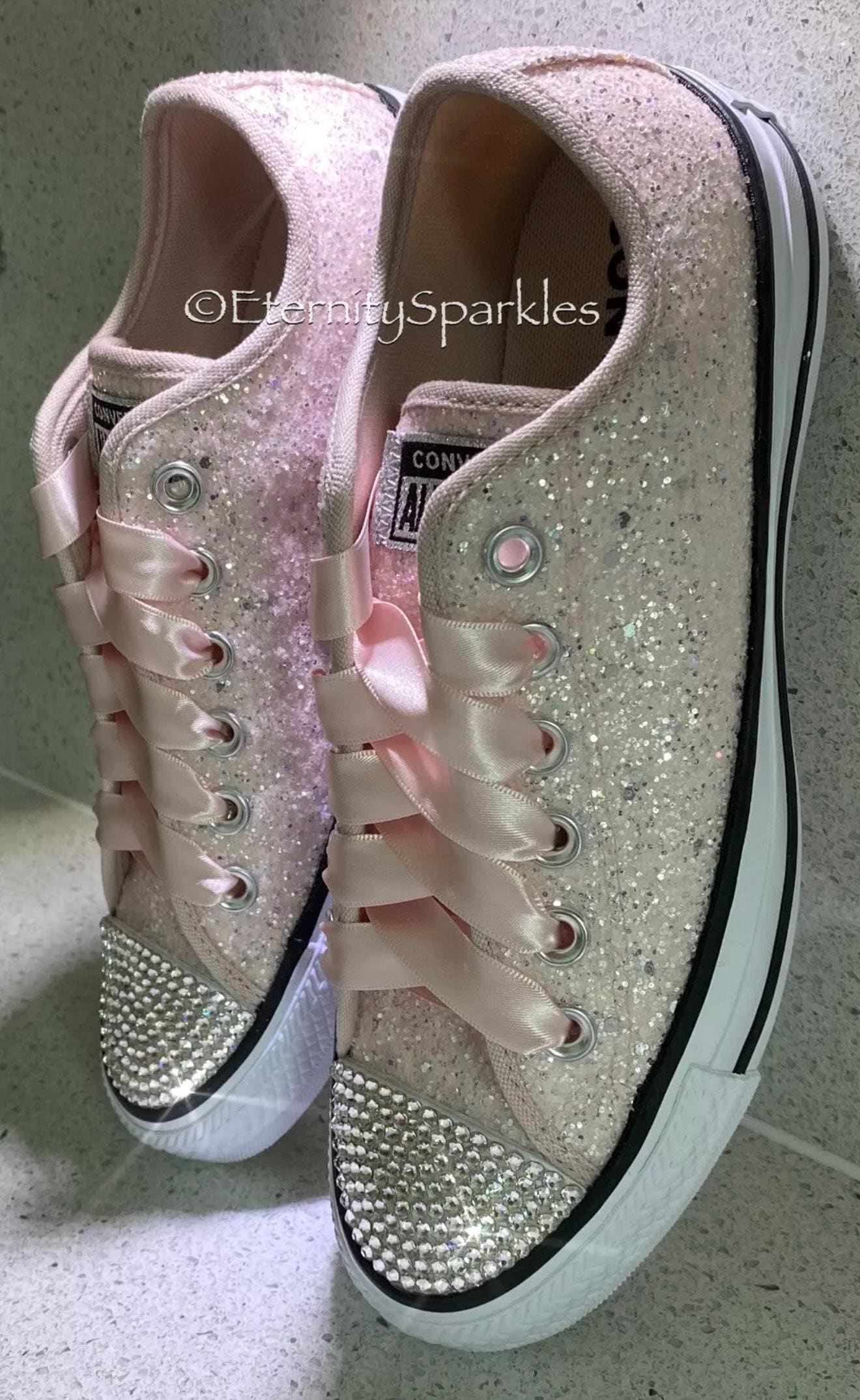 Custom Converse Pale Pink Glitter Luxury Crystal Sparkle Trainers