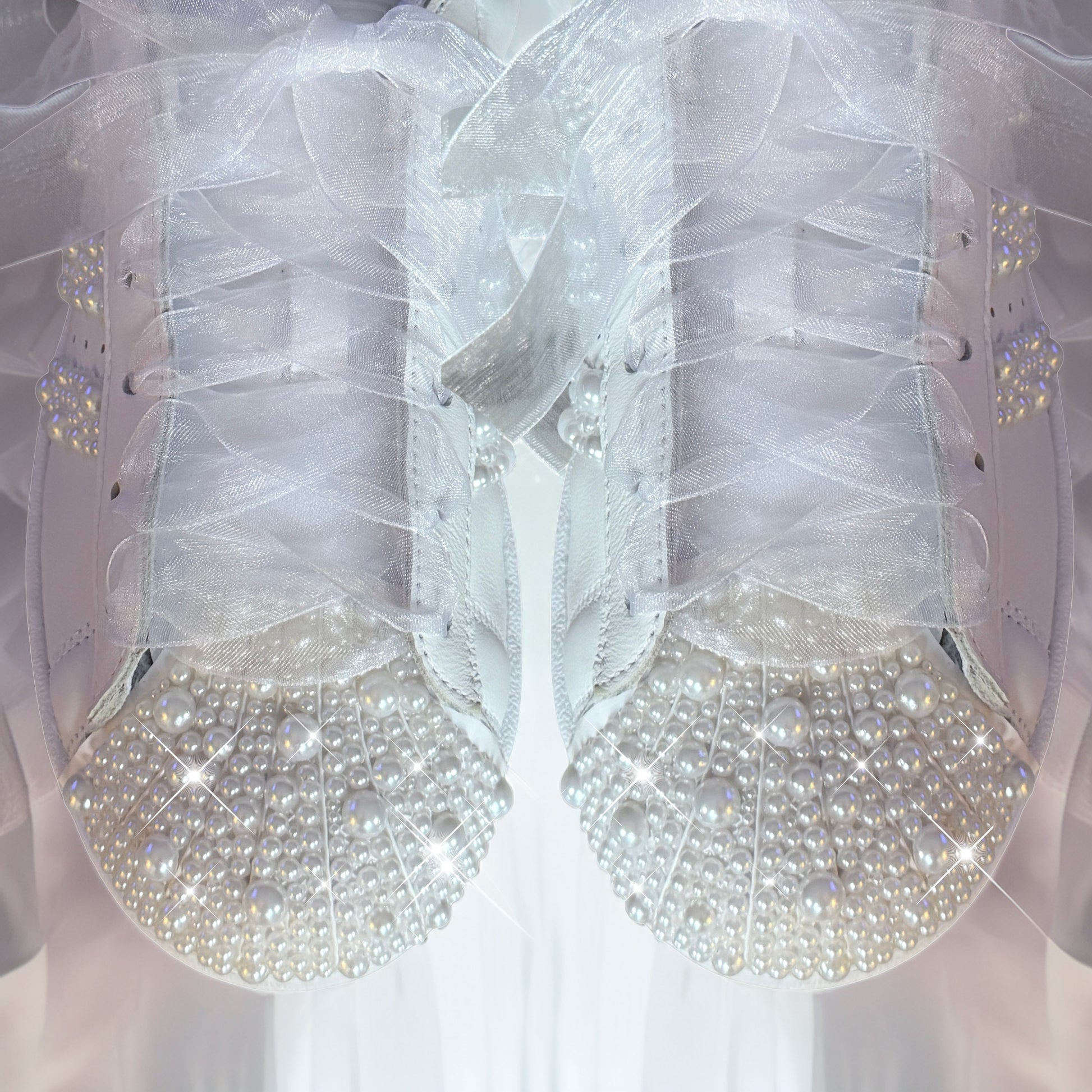 Custom White Adidas Superstar Luxury Pearl Personalised Bridal Trainers